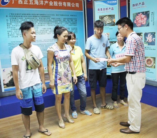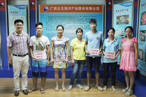 8月24日,正五海產公司召開員工子女考上大學本科獎勵座談會,對在2015年高考中取得優異成績3名員工子女按照《職工子女考上大學本科入學獎勵辦法》進行了獎勵。