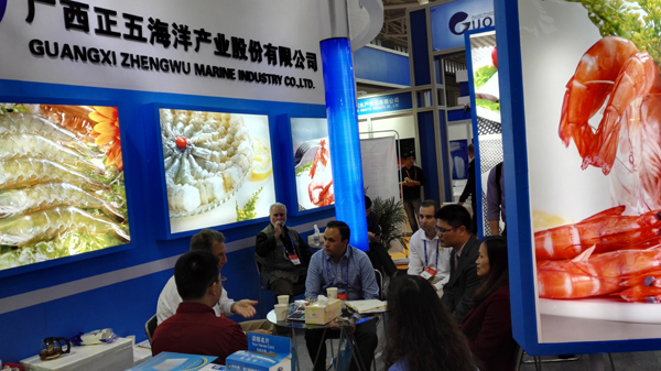 “漁博會”期間,正五海產公司展出了傳統的生蝦仁系列、金鯧魚及新開發的壽司蝦等十余種產品。正五海產總經理崔小祥率領國貿部、內銷部等相關部門的員工與來自世界各地的客戶進行洽商。正五海產公司豐富多樣的產品讓眾多國內外客戶駐足詢問,產品的質量更得到了客戶的好評和業界的一致認可。