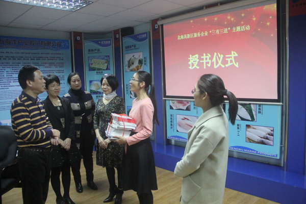12月20日,高新區(qū)管委會黨工委委員、管委會副主任傅文偉等領(lǐng)導(dǎo)來到正五海產(chǎn)公司開展“三有三送”主題活動。