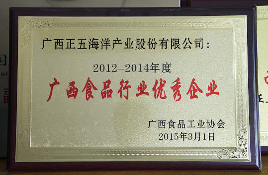 經過客觀、公正、公平、公開的評選公示,廣西食品工業協會于日前向正五海產公司頒發了“廣西食品行業優秀企業”榮譽證書和牌匾。